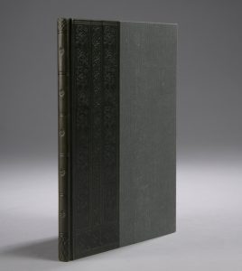 Petit in-8°, demi-veau vert sombre entièrement orné d’un décor à froid, dos lisse orné (Honnelaître).