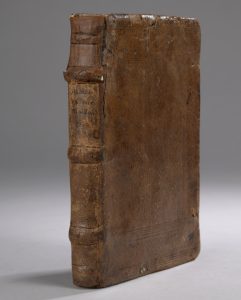 Petit in-8° (125 x 180 mm), veau souple, plats entièrement ornés d’un décor à froid, traces de lacs, dos à nerfs (reliure de l’époque).