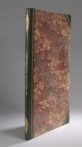 demi-chagrin brun à coins, fine roulette dentelée dorée bordant les plats, dos lisse orné, couverture conservée (reliure de l’époque).