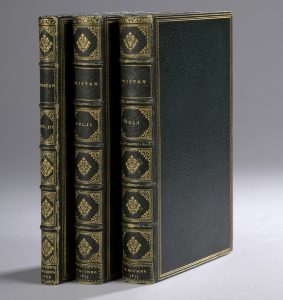 3 volumes in-12, maroquin vert, triple filet doré encadrant les plats, dos à nerfs orné, tête dorée (R. Raparlier).