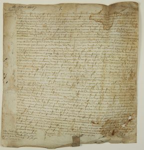 (MAINE-ET-LOIRE. MONTJEAN-SUR-LOIRE) 1437. BARONNIE DE MONTJEAN (ou MONTEJEHAN) Aveu de la terre des Forges rendu à la Baronnie de MONTJEAN par Pierre GUESDON, Seigneur des Forges. (Route de La Pommeraye 49).