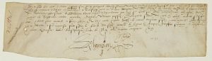 Quittance signée du seing manuel de Hugues de CHAMPION, Greffier Souverain en ladite ville et Comté de Guînes le 17 Mai 1551.