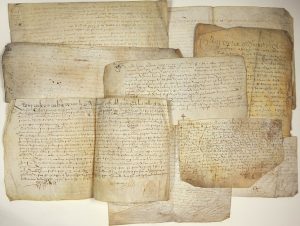 (CALVADOS) - 9 Parchemins concernant le Fief DOUESY et la famille Noble DOUESY D’OLLANDON, de 1559, 1584. 1587, 1606, 1613, 1620, 1628, 1630 et 1643. Formats divers. Qqs défauts.