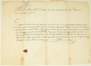 1p in folio oblong (29x40) avec Sceau de cire aux armes de PAUL –