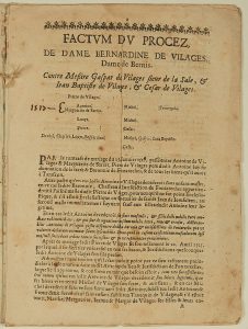 (GARD - BOUCHES-DU-RHÔNE) - 1649 – « FACTUM du Procès de Dame BERNARDINE DE VILAGES, Dame de Bernis. Contre Messire Gaspar de VILAGES Sieur de la Sale, & Jean Baptiste de Vilages, & César de Vilages. » - Impr. 8pp in-4° -