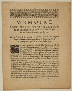 CHAULNE, Abbesse du Monastère Royal de S. Pierre dudit Lyon.” - Imprimé 7pp in-4°- sans date - (texte)