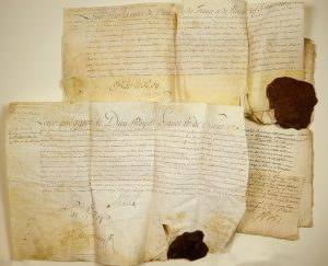 (DÉCORATION DE SAINT LOUIS. CITADELLE DE MONTPELLIER (34). 7 Parchemins et papiers de Messire Antoine De BONNEVAL Chevalier, Seigneur de POMONT et autres lieux, Major de la Ville de CHAMBERY en Savoie, marié à Jeanne Marguerite POISBLANC :