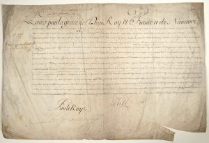Le Roi, en confirmant la nomination du Comte de TOULOUSE Amiral de France, nomme Estienne BENOIST DE FRESNEL, notre Conseiller Lieutenant de l’Amirauté d’HONFLEUR, pour faire les fonctions de l’Office de notre Conseiller Lieutenant Criminel Commissaire Enquêteur examinateur et Garde du Scel audit Siège de l’Amirauté de TOUQUES, en attendant la vente de l’Office.