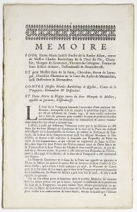 (LOT. LA TOUR DUPIN GOUVERNET) - “MÉMOIRE pour Dame Marie Louise Émilie de La ROCHE ALLART, veuve de Messire Charles Barthélemy de LA TOUR DU PIN, Chevalier, Marquis de GOUVERNET, vicomte de CALVIGNAC, tutrice de leurs Enfants mineurs,...