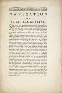«NAVIGATION SUR LA RIVIÈRE SEINE. » AUBE. Sur ce qui a été représenté au Conseil, que la dépense ou les ouvrages faits pour la Navigation de la Ville de TROYES à NOGENT SUR SEINE, deviendront inutiles, si après l’Arrêt du conseil du 17...