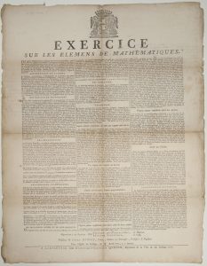 Dans l’Église du Collège le 7 Avril 1722. – (Arithmétique et Algèbre, raisons et proportions, progressions géométriques, équations, trigonométrie rectiligne…) –