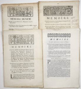 ─ « Mémoire signifié pour Étienne THEVENET, Négociant à Lyon, demandeur. Contre les prêtres de la Congrégation de la Mission de la ville de Lyon, défenseurs. » & « Second Mémoire… question très importante… » 30 pages & 10pp grand in-folio.
