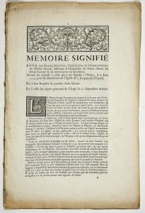 (PARIS. CLERGÉ) – « Mémoire Signifié pour les Grand-Maitre, chevaliers et Commandeurs de l’Ordre Royal, Militaire & Hospitalier de NOTRE-DAME DU MONT-CARMEL & DE SAINT LAZARE DE JERUSALEM. Servant de réponse à celui qui a été signifié à...