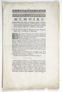 (SEINE MARITIME. 1744. SAINT PIERRE DE MANNEVILLE (76) «Mémoire pour Messire Pierre AUBERY DE BELLEGARDE, Ecuyer, Conseiller du Roy, Correcteur ordinaire de la Chambre des Comptes, Aydes et Finances de Normandie, Seigneur & Patron Honoraire de...
