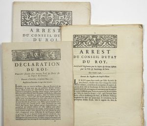 ─ « Arrest du Conseil d’État du Roi, portant Règlement pour les Papiers & cartons destinés pour la Ville & Faubourg de Paris. »