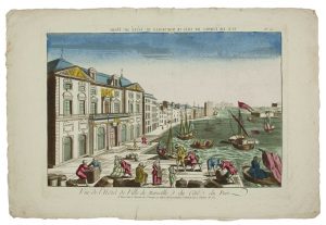 MARSEILLE (13) - 1 VUE D’OPTIQUE XVIIIe S. « Vue de l’Hôtel de ville de MARSEILLE du coté du Port. » N°18 – Impr. à Paris chez J. Chereau rue St. Jacques au dessus de la Fontaine St Severin aux 2 colonnes N°257. Planche (36 x 53)