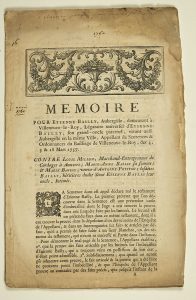 VILLENEUVE-LE-ROI (VAL-DE-MARNE). 1760. « Mémoire pour Étienne BAILLY, Aubergiste, demeurant à VILLENEUVE-LE-ROY, légataire universel d’Étienne BAILLY, son grand-oncle paternel, vivant aussi aubergiste en la même ville, appellant de...