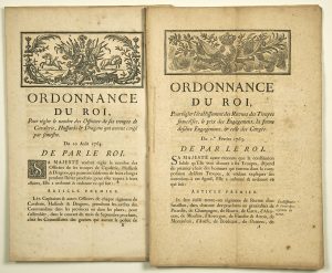 ─ « Ordonnance du Roi, pour régler l’établissement des Recrues des Troupes Françaises, le prix des Engagements, la forme desdits Engagements, & celle des Congés. »