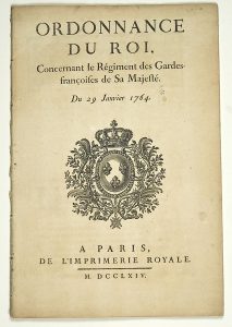 GARDES FRANÇAISES. “Ordonnance du Roi, concernant le Régiment des Gardes-françoises de Sa Majesté.” - du 29 Janvier 1764 - Paris, de l’Imp. Royale, 1764, 23pp in-folio -