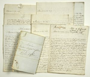 ♦ Intéressantes lettres concernant le commerce des Estampes, Les souscriptions, les sujets du graveur, et dans lesquelles il donne des nouvelles de la Capitale notamment une exécution d’un garçon boulanger qui avait assassiné son maître, condamné au Châtelet à faire amende honorable et à être rompu vif ; et sur des grands travaux pour l’embellissement de Paris « un quai que l’on va faire depuis la place du Pont Saint Michel jusqu’au grand Châtelet…. » enfin le froid n’épargne pas la Capitale « un grand nombre de bateaux ont péri sur la rivière et plusieurs personne aussi… »