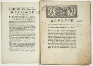 ─ « Réponse pour Monsieur le Duc de CHAULNES, à Madame la duchesse de CHAULNES sa mère. »