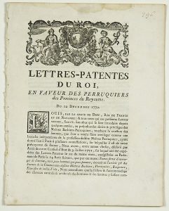 « … Nous entendions que la frisure & l’accommodage des cheveux naturels & artificiels des hommes et des femmes y furent compris, en sorte que les Maitres Perruquiers de Paris en eussent le droit exclusif… » -