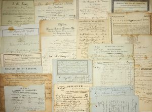─ « De Chez LARABRIE et Compagnie, Magasin de Draperie, Soierie et Dorure, au coin de rue Poitevine et du Grand Marché, à Bordeaux 1784 ─ « De Chez POUPARD Père et fils, au Quai de la bastide à Bordeaux 1786 »