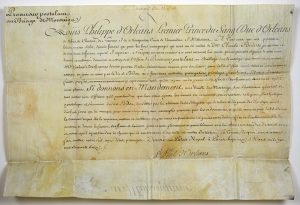 Louis Philippe , Duc d’ORLÉANS (1725-1785) Père de Philippe-Égalité et Grand-père de Louis-Philippe - Pièce Signée “Louis Philippe d’ORLÉANS, Premier Prince de Sang, Duc d’ORLÉANS, de Valois, de Chartres, de Nemours & de...