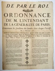 Surintendant des Maison, Finances, Domaines & Affaires de la Reine (Marie-Antoinette), concernant les fonctions des Syndics dans chaque Paroisse.