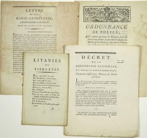 ─ « Ordonnance de Police, qui ordonne que toutes les Boutiques seront & demeureront fermées, & que toutes les façades des maisons seront illuminées, tant dans la ville que dans les Faubourgs, le lundi 21 de ce mois, jour auquel la REINE viendra à Notre-Dame & à Sainte-Geneviève, pour rendre les actions de grâces à Dieu ; & que Leurs Majestés se rendront ensuite à l’Hôtel de Ville. » du 15 Janvier 1782 – Impr. Ph. D. PIERRES, Imprimeur Ordinaire du Roi, de la Police, & C. rue S. Jacques. 1782 ; 4pp in-4° -