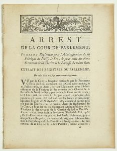 NOISY-LE-SEC (93). CLERGÉ. 1782. “Arrest de la Cour de Parlement, portant Règlement pour l’Administration de la Fabrique de NOISY-LE-SEC, & pour celle des biens & revenus de Charité de la Paroisse du même lieu. - du 13 Mai 1782 - Bandeau -...