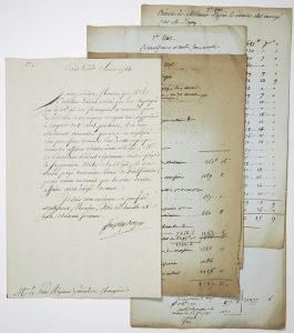─ 4 Mémoires des Dépenses de la Maison du Comte d’OGNY intendant général des Postes et Courriers. Avances et gages des gens de sa maison, Fournisseurs, Créances ayant titres. (détails intéressant sur la vie d’une maison d’Aristocrates au XVIIIe S.