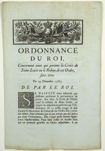 (CROIX DE SAINT LOUIS. DÉCORATION.) « Ordonnance du Roi, concernant ceux qui portent la Croix de Saint Louis ou le ruban de cet Ordre, sans Titre. » - Fait à Versailles le 29 Décembre 1785 – bandeau et lettrine – Impr. à paris, de...
