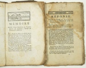 ─ « Recueil de Mémoires et autres pièces concernant l’affaire de M. le Grand Aumônier. Mémoire pour Dame Jeanne de Saint Rémy de Valois, Épouse du comte de la Motte. Fait… »