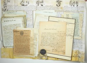 ─ Sa Bulle du Pape LÉON XII qui le nomme Cardinal, en 1823 (Il fut créé Cardinal par le Pape Pie VII qui meurt en 1823) Parchemin enluminé (65 x 46) avec sceau de plomb papale pendants sur cordelette.