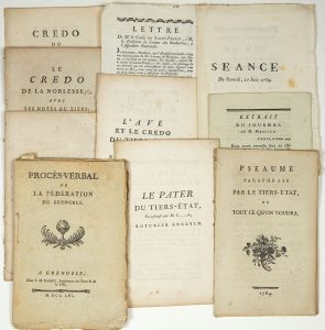 ─ « Prières à l’usage de tous les Ordres, le magnificat du Peuple, Le Miserere de la Noblesse, Le de Profundis du Clergé, quivi du Nunc dimittis du Parlement. » par l’auteur des Litanies. 1789 » Impr. 15pp in-8°