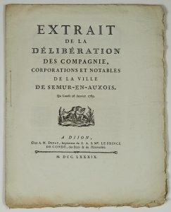 (1789. CÔTE D’OR) - « Extrait de la délibération des Compagnie, Corporations et Notables de la Ville de SEMUR-EN-AUXOIS. » - du 26 Janvier 1789 - Vignette –