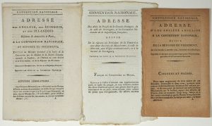 ─ « ADRESSE des ANGLAIS, des ÉCOSSAIS, et des IRLANDAIS résidants et domiciliés à Paris, à la Convention Nationale, et réponse du Président; Suivies du Discours prononcé à la Barre de la Convention par les Députés de la Société Constitutionnelle de LONDRES...” –