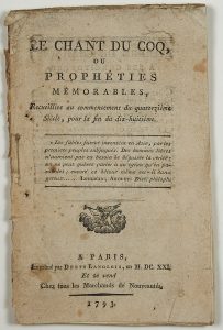 «LE CHANT DU COQ, ou Prophéties mémorables recueillies au commencement du 14ème Siècle, pour la fin du 18ème. Impr. à PARIS, par Denys Langlois, en 1621 et se vend chez tous les Marchands de Nouveautés. 1793. (… des diverses sortes de...