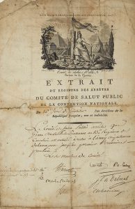 COMITÉ DE SALUT PUBLIC. 1794. VIGNETTE. Extrait d’un Arrêté du 16 fructidor an 2 (2 Sept. 1794) -