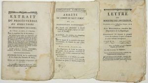 ─ « Arrêté du Comité de Salut Public de la Convention Nationale qui interdit aux Amidonniers d’employer des grains propres à la nourriture de l’homme, 22 ventôse an 3 (12 Mars 1795) » Impr. 2pp in-8°
