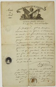 ARMÉE DU NORD . Général Comte DEJEAN (Jean-François) Castelnaudary 1749-1824 ; Pièce Autogr. Signée DEJEAN comme Général de Division Commandant le Génie de l’armée du NORD - Certificat pour George Étienne THUILLIER “a été...