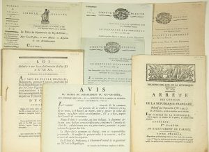 PUY-DE-DÔME. 8 Imprimés in-4° sur la CONSCRIPTION MILITAIRE. (1800/ 1804) Lettres impr. du Préfet du Puy-de-Dôme, Clermont-Ferrand : de l’An 8 (1800) à l’An 12, sur la Conscription militaire ; sur la levée des 30000 Conscrits pour la...