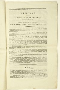 COMMERCE avec HAMBOURG (Allemagne) - “MÉMOIRE (de Procès) pour le Sieur Pierre MAUPAS, Négociant Français. Contre la Veuve et Héritiers de G.H. SIEVEKING, Habitants de HAMBOURG - Année 1801 - Impr. 27pp - grand in-folio.