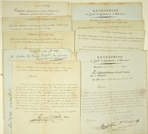 (GARD) « ENTREPRISE DU CANAL D’AIGUES-MORTES A BEAUCAIRE. » 14 Lettres signées des Administrateurs des Canaux d’Aigues-Mortes à Beaucaire, membre du comité d’exécution, séant à MONTPELLIER. (Hérault), sous l’Empire, de 1807 à 1809,...