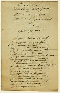 (DOUBS) « ARC DE TRIOMPHE DE BESANÇON. » POÈME en 4 Chants dédié à la GRANDE ARMÉE, 1809 - Livret manuscrit d’époque 10 pages (17 x 11) -