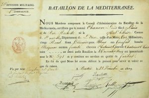 CORSE. BATAILLON DE LA MÉDITERRANÉE. 1809. Pièce signée du Conseil du « BATAILLON DE LA MÉDITERRANÉE » (Entête, cachet) - BASTIA 28 Décembre 1809 -