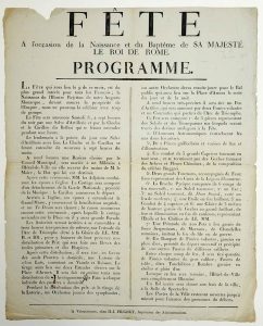 (NAPOLÉON II. NORD. 1811.) « FÊTE à l’occasion de la Naissance et du Baptême de SA MAJESTÉ LE ROI DE ROME. » (Né le 20 mars 1811). Placard (50 x 41).