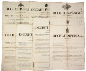 Impr. à LYON, chez J.B. KINDELEM, rue de l’Archevêché, N°3.) signé (impr.) NAPOLÉON & du Comte BERTRAND :