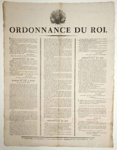 Vive de Roi ! Vive Louis XVIII ! Vive les Bourbons. » Impr. à POITIERS, de l’Imprimerie de François-Aimé BARBIER, Imprimeur du Roi et de la Préfecture. 1815.